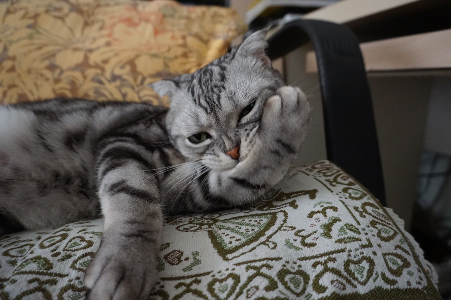 Big Clumsy Cat: ‘Emma, how old are you for still bite your paw? ’